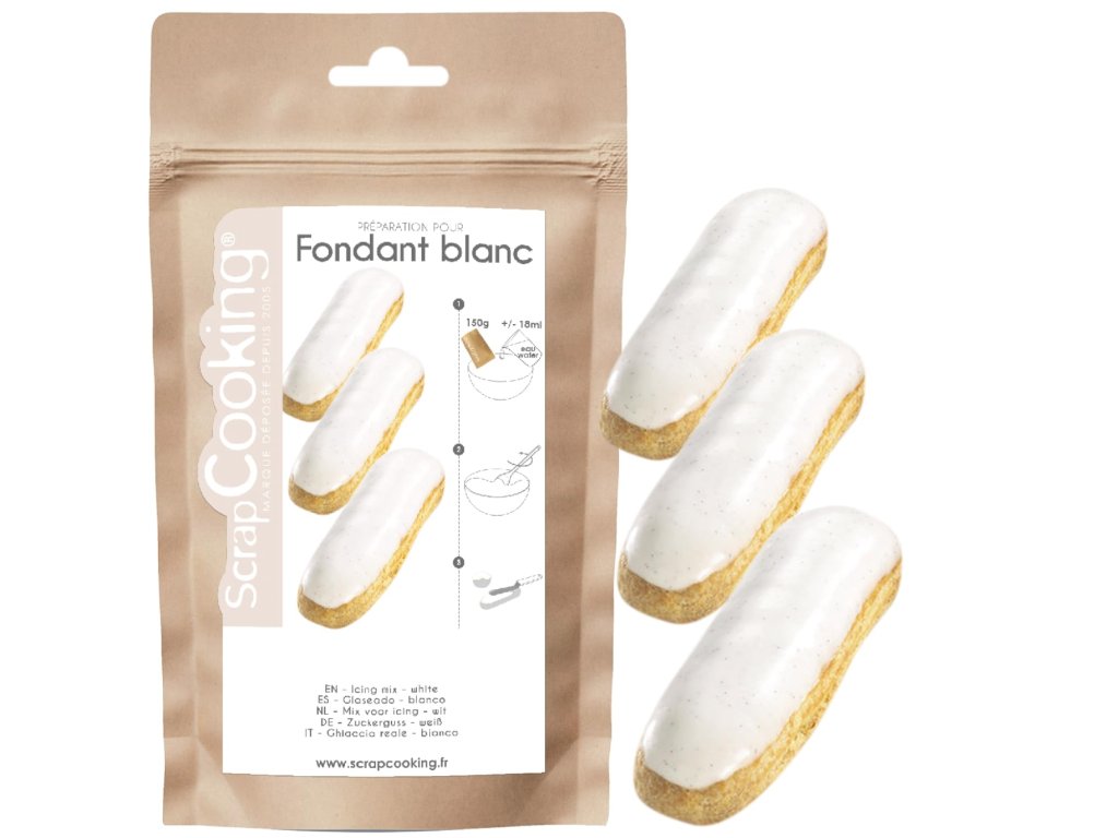 ScrapCooking biely fondán v prášku je kvalitný práškový fondán, ktorý je ideálny na prípravu hladkého a elastického polevy na torty a dezerty. Tento fondán v prášku sa jednoducho pripravuje, stačí pridať vodu a dôkladne premiešať, aby vznikla jemná a tvarovateľná hmota.